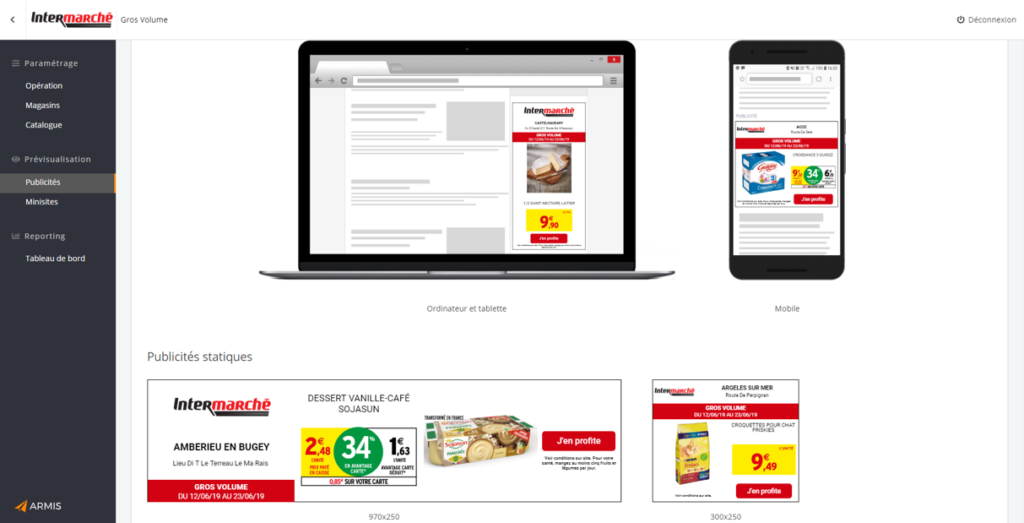 La plateforme SaaS d’ARMIS apporte avant tout aux enseignes une grande liberté de création et d’activation de campagnes multilocales. Un enjeu clé lorsque l’on sait que 65% des français sont attentifs aux promotions et 72% s’attendent à ce que le digital remplace leur diffusion papier (Étude Harris Interactive-ARMIS, novembre 2018).