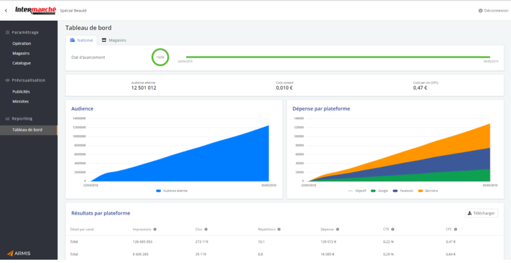 Désormais, les équipes centrales ou régionales des enseignes peuvent piloter en toute autonomie leur prise de parole en ligne, activer des campagnes de grande ampleur à la volée, configurer sur mesure des campagnes locales, générer des contenus publicitaires, suivre en temps réel les résultats des opérations et leurs performances, éditer des rapports d’analyse complets sur les offres, les préférences consommateurs, les zones de chalandise..
